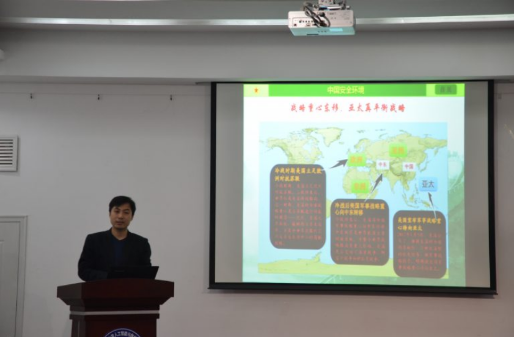 11月15日晚,由王靖鑫老师讲授的党课培训第四讲——中国安全环境概述,在绅士漫画 绅士漫画 楼102开课。此次授课对于学生党员们进一步了解中国安全环境理论知识,增强维护组作何平统一的责任意识有着指导意义。