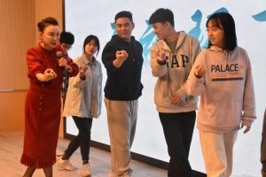 讲述中,曾院长穿插着与同学们的互动,同学们积极上台参与,切身体验学习剧目中的经典动作。这令同学们感受到:美,不单单是指艺术品,台下苦练后舞台上的惊鸿一曲是美,从戏服到唱腔处处精细打磨亦是美。美育,正在从单纯欣赏慢慢渗透进每一个在场学子的心里。