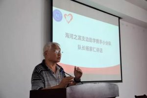 杨家仁队长在讲话中提到支边助学小分队成立于十年前,从帮扶青海玉树县中学开始,大大小小的志愿活动,他们坚持了十年。他认为自己不断地参加志愿者活动,只是担起了一名共产党员应尽的责任,尽己所能为社会做贡献。支边助学小分队坚持十年,是一份耐力,而同学们也要有一份耐力,学好知识,不断前进,报效社会,报效国家。
